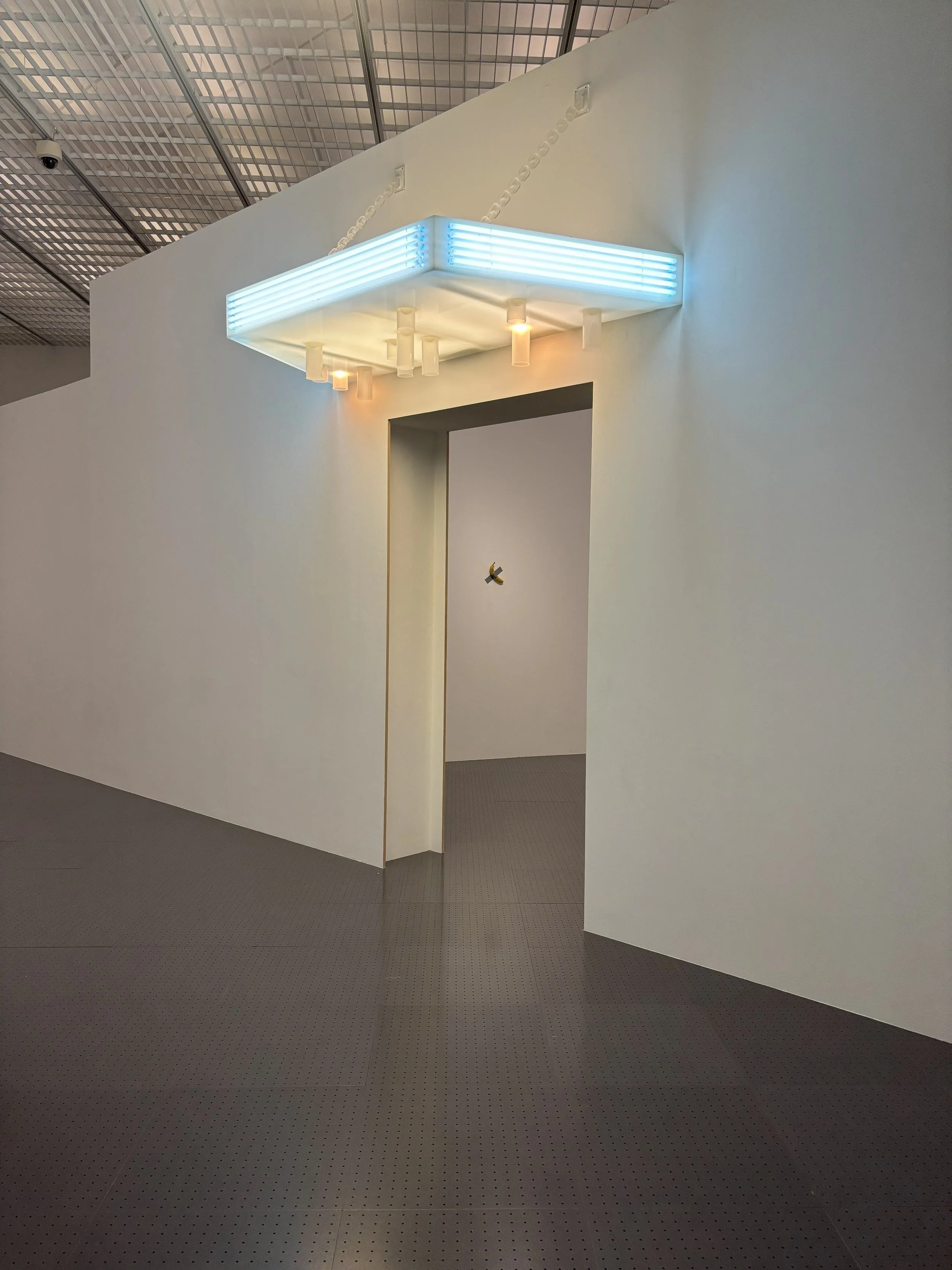 The Metz Centre Pompidou added to the display by placing it in a small room by itself, with an illuminated marquis above the entry way, like an old time cinema or casino, enhancing the idea of grandeur of art that is juxtaposed by the normalness of the banana.